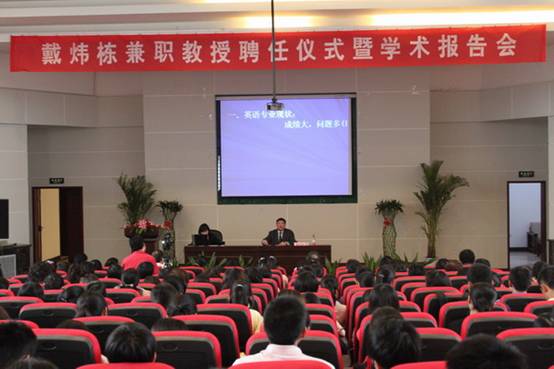 聘任仪式后,戴炜栋教授为外国语学院师生作了主题为“把握机遇,促进外语/英语专业稳定发展 —兼谈外语教师专业发”的学术报告。