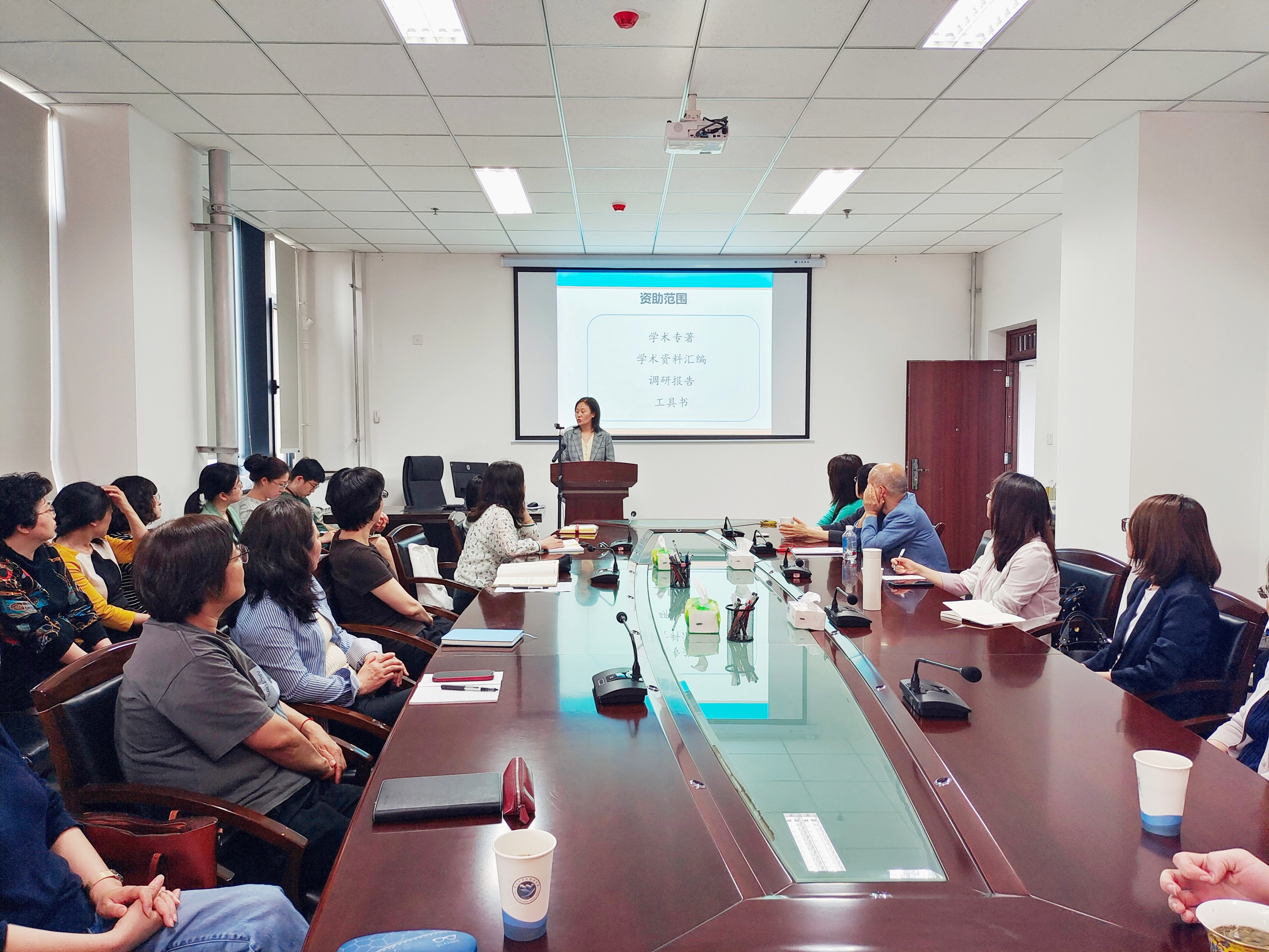 首先,会议邀请英语笔译专业方向导师赵娜,就其2023年顺利获批国家社科基金后期资助项目进行申报经验分享。她从申报要求出发,详细分析了国社科后期资助项目在前期成果、选题内容与材料撰写方面与其他项目申报的异同。作为我院首个获批国社科后期资助项目的申报人,她结合多次申报经历,就与会教师关心的问题进行了充分交流。
