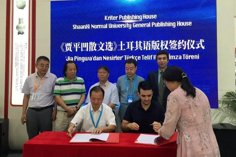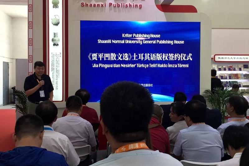 821日上午,第26届北京国际图书博览会开展伊始,总社与土耳其Kriter出版社在展会现场举行《贾平凹散文选(汉英对照版)》土耳其语版权签约仪式。陕西省委宣传部厅级领导沙庆超,陕西省委宣传部出版处处长高彦平,陕西省委宣传部版权管理处调研员王新民,陕西省翻译协会会长、西北大学外语学院院长胡宗锋,土耳其Kriter出版社代表、北京世园会土耳其馆馆长Muhammet,陕西省翻译协会海外理事、必赢亚州242“中土(土耳其)文化交流中心”主任、《贾平凹散文选》土耳其语翻译者艾哈迈德·艾克雷姆·德米尔卡勒,总社副社长屈瑞新等出席了签约仪式。总社大众文化出版中心主任郭永新及相关编辑参加了活动。活动由郭永新主持。
