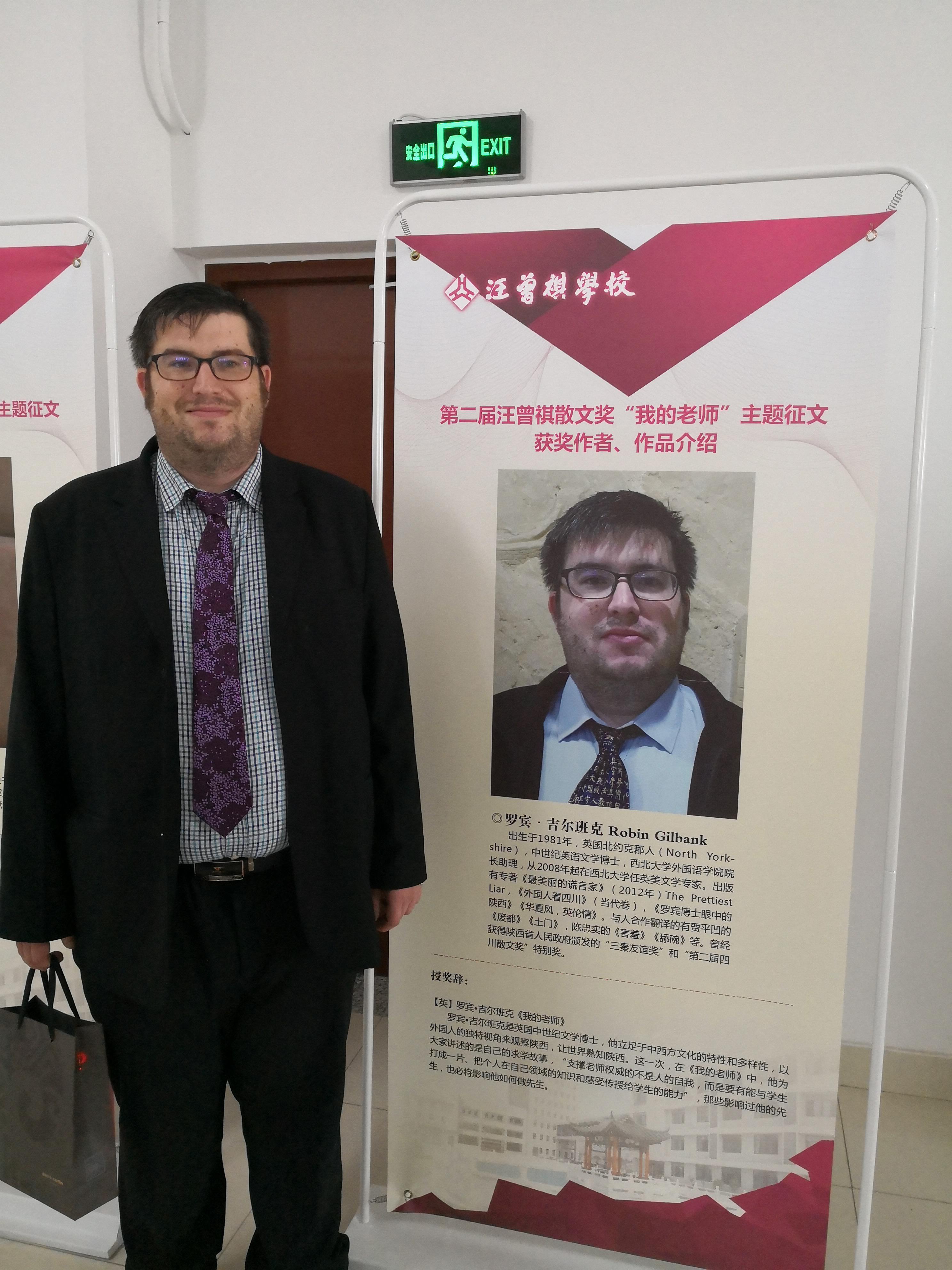 2018年5月13日,第二届汪曾祺散文奖“我的老师”主题征文颁奖典礼在高邮市汪曾祺学校举行。全国港澳研究会创会会长、国务院港澳事务办公室原常务副主任陈佐洱,中国作协副主席、著名作家贾平凹,汪曾祺之子、经济日报社原国际部主任、作家汪朗,江苏省作协主席范小青出席颁奖典礼。我院院长助理罗宾博士获外国散文奖。