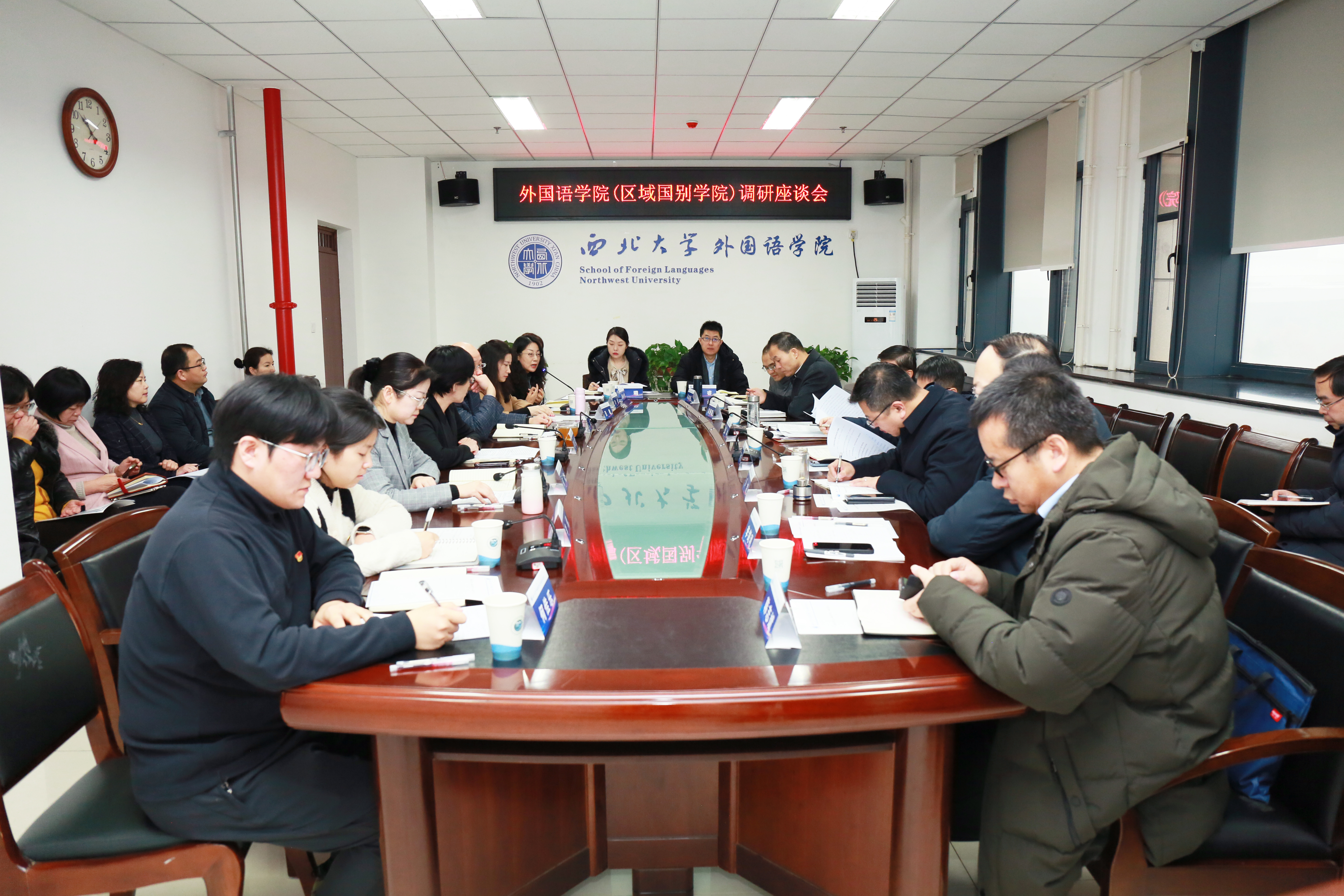 孙庆伟听取汇报后,对学院近年来的发展成效给予肯定,并提出五点期望:一是外国语学院要坚持固本,找准定位,聚焦教学,强化外语学科基础性支撑性功能;二是积极探索教师职业发展新路径,打造教学名师,助力学生综合素养提升,落实立德树人根本任务;三是希望以招生工作、专业设置、精细化人才培养模式为切入点,努力提升全校公共英语水平;四是以中华学术外译、讲好陕西故事、中国故事为抓手,加强国际传播能力建设,寻求探索科研增长点;五是以一带一路发展战略及区域国别研究为契机,统筹资源,赋能科研创新。